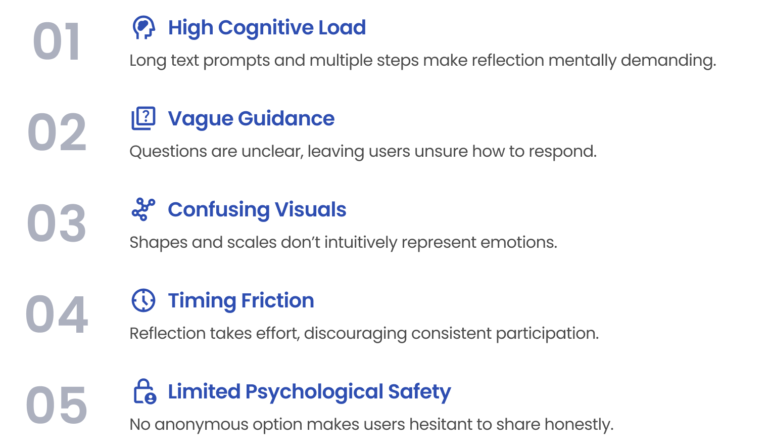 The current experience of reflecting on emotions is not intuitive or engaging, making it difficult for employees to consistently express how they feel.